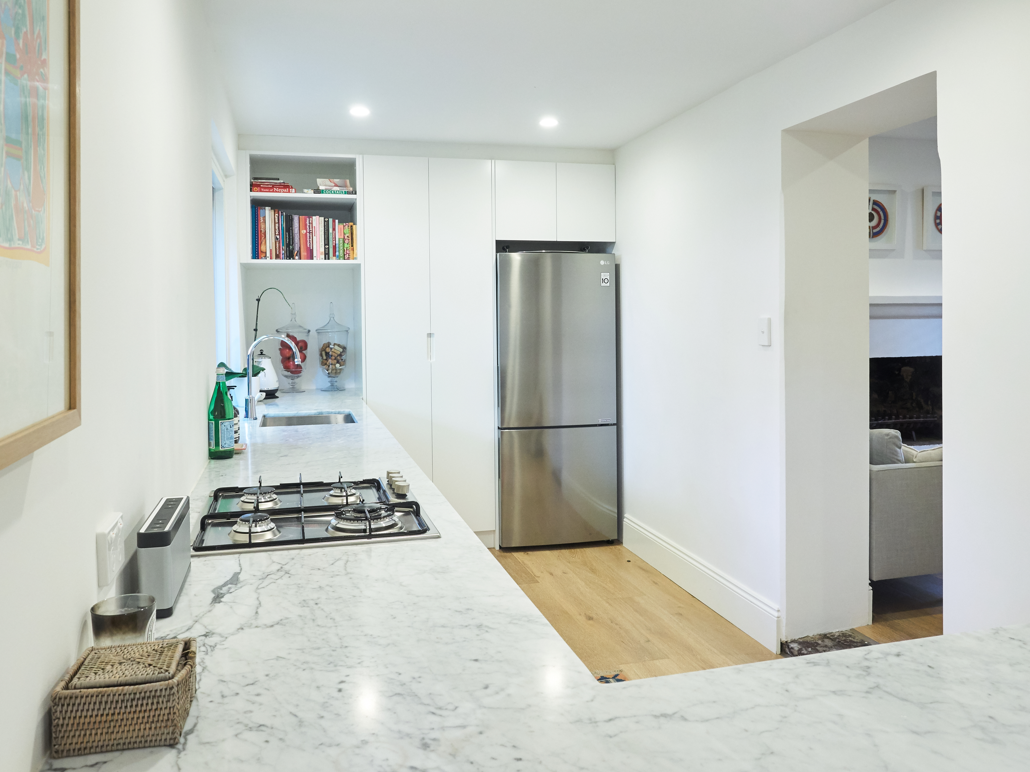 Behind its original sandstone, double fronted facade lies a beautifully restored modern home with rich timber flooring throughout. The inviting cosy lounge has a beautiful fireplace and has a real farmhouse feel, the perfect place to chill at the end of a busy day. A formal dining area leads out to the designer gas kitchen with it’s stunning marble work surface that cleverly continues outside to make a bar area via a large bi-fold window, this makes a great place to sit and relax and maybe enjoy a cocktail or two with friends. French doors open out onto to a very tranquil and peaceful courtyard garden a perfect place to entertain guests while you take control in the kitchen or on the barbeque.